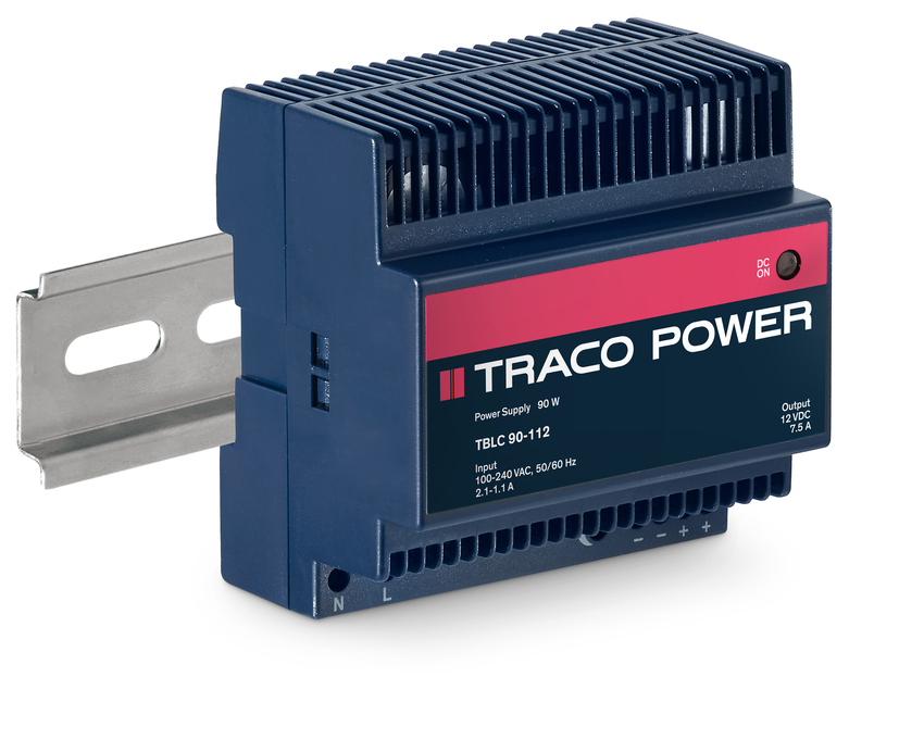 90 Watt AC/DC power supply, household/building automation, 85-264VAC input, 3000 VAC isolation, fits into flat control panels (55 mm depth), DIN-Rail